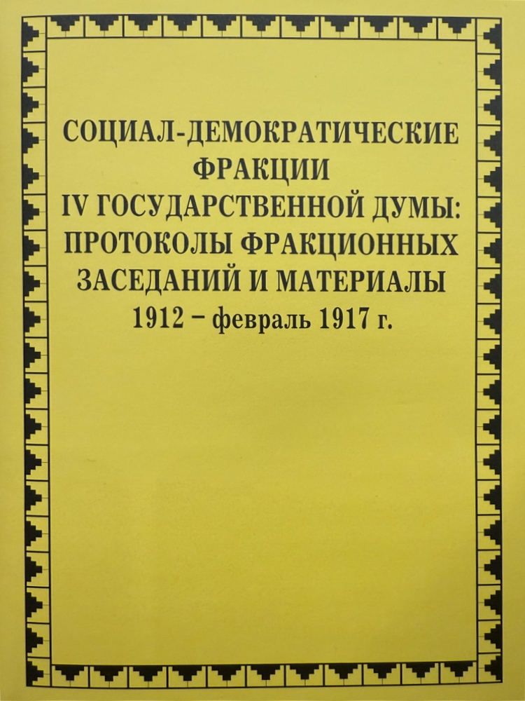 Библиографическое описание: Социал-демократические фракции IV Государственной думы: протоколы фракционных заседаний и материалы. 1912 — февраль 1917 г. М.: Политическая энциклопедия, 2025. 1023 с. (Политические партии России. Конец XIX — первая треть ХХ века. Документальное наследие). ISBN 978-5-8243-2619-2.